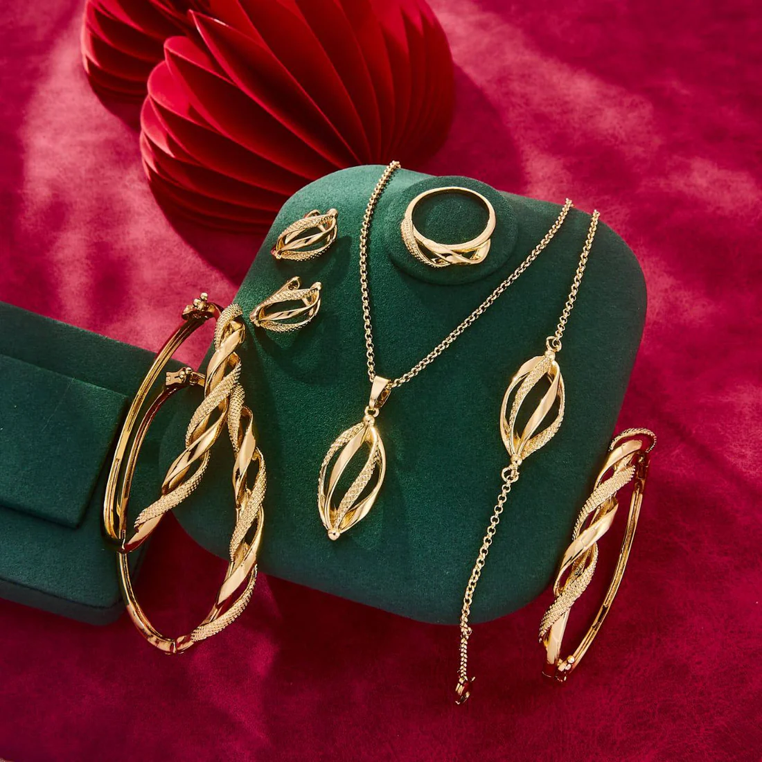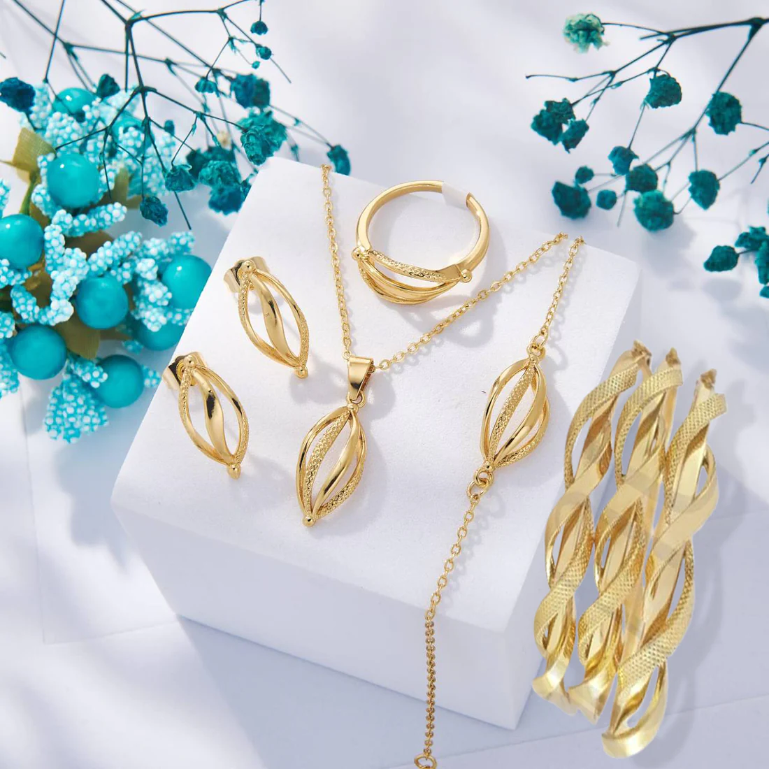 (قلادة – خاتم – أقراط – سوار – 3 أساور)