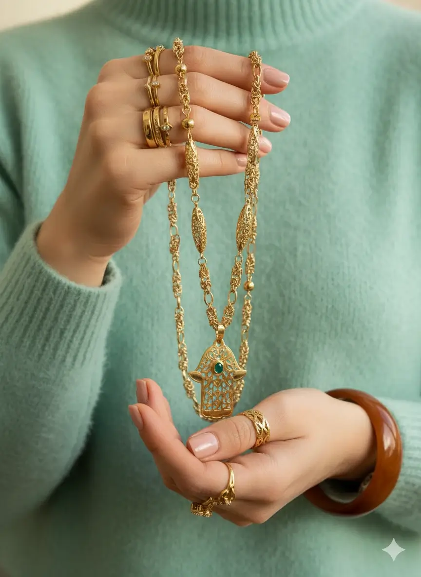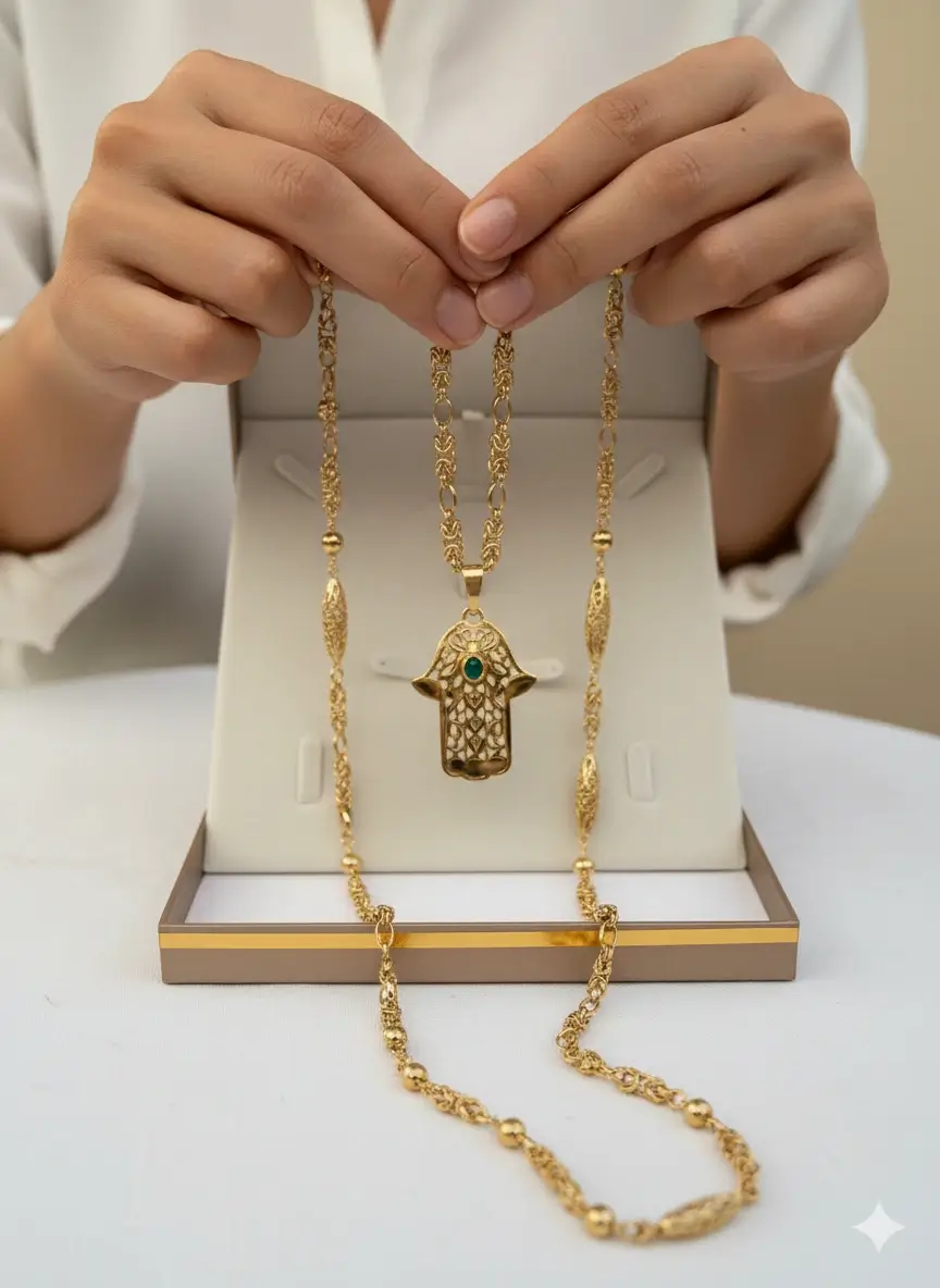 الطقم مكون من سوطوار أنيق.  هدية المثالية لجميع المناسبات والحفلات والأعراس وأعياد الميلاد والأهم أنها صالحة كذلك للاستعمال اليومي ,مقاومة للماء و العطور الكحولية فهي مصنوعة من بلاتين مختوم بديل الذهب الاصلي